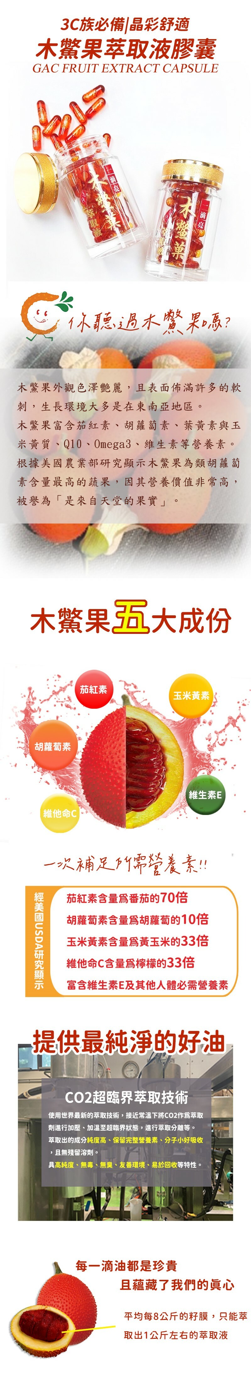 木鱉果被譽為『來自天堂的果皇』含有豐富的茄紅素、胡蘿蔔素、玉米黃質、Q10、Omega 3、維生素E等人體必需營養素